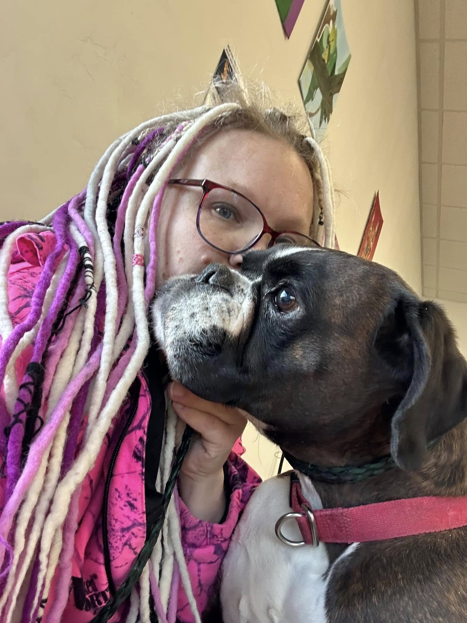Hi, I’m Kenya! I’m a 6-year-old spayed brindle female looking for my perfect retirement home. I have excellent house manners and need a fenced-in yard to enjoy. I love playing with toys and get along with everyone—kids, cats, and other dogs! Car rides aren’t my favorite, but I’m working on it!
